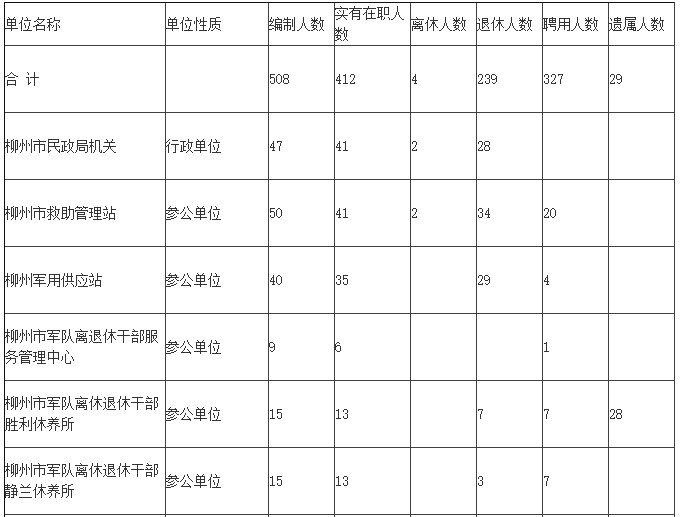 柳州市民政局预算实行综合预算,反映柳州市民政局机关和15个下属事业单位所有的收入和支出预算。