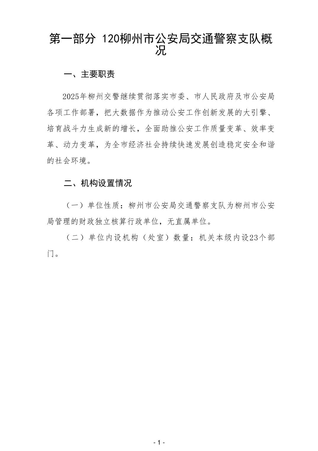 120柳州市公安局交通警察支队2025年部门预算公开说明 - 2025 - 广西博彩公司网址网站