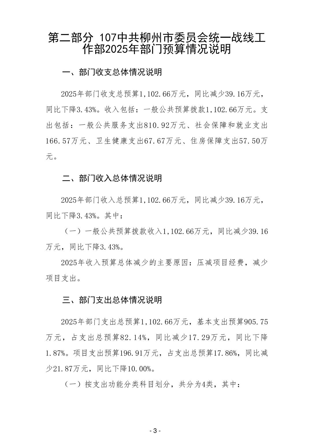 107中共柳州市委员会统一战线工作部2025年部门预算公开说明 - 2025 - 广西博彩公司网址网站