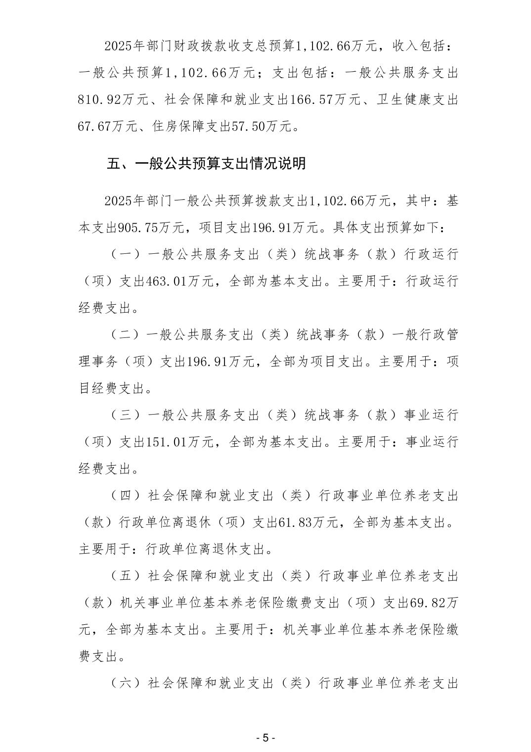 107中共柳州市委员会统一战线工作部2025年部门预算公开说明