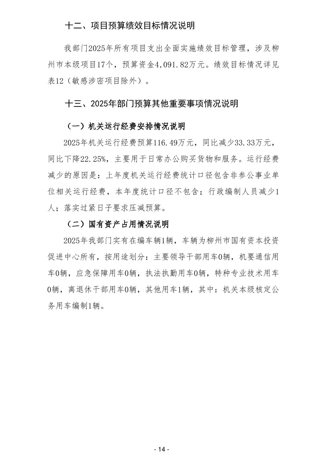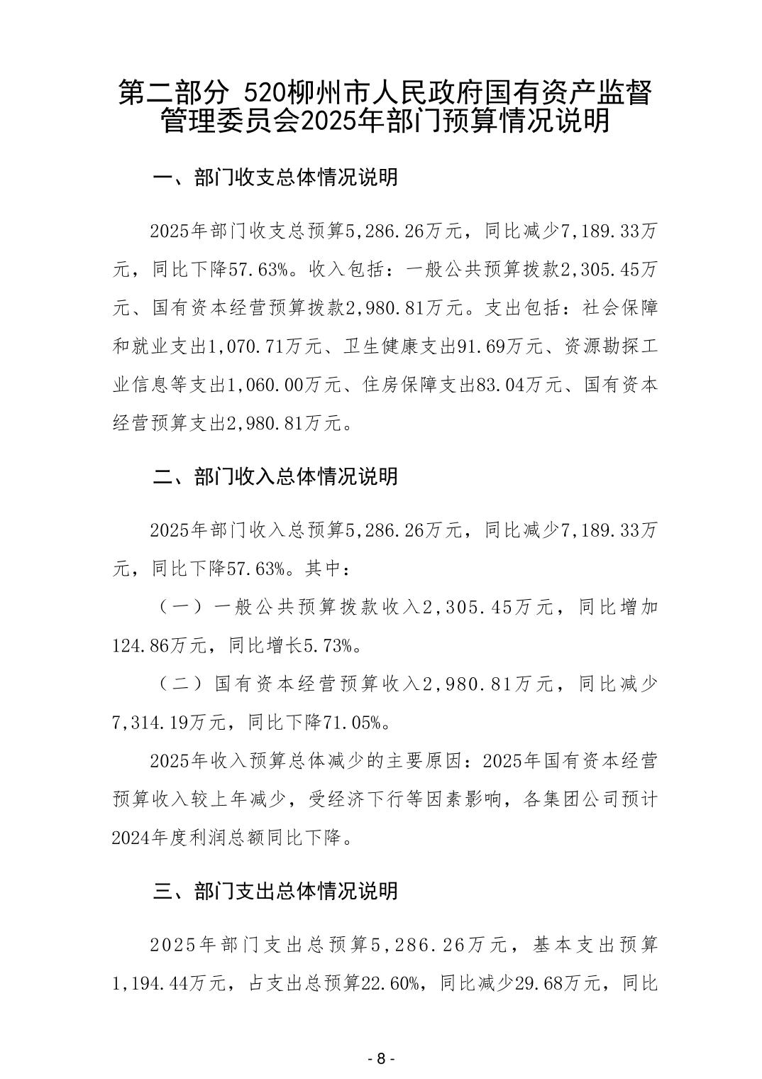 520柳州市人民政府国有资产监督管理委员会2025年部门预算公开说明