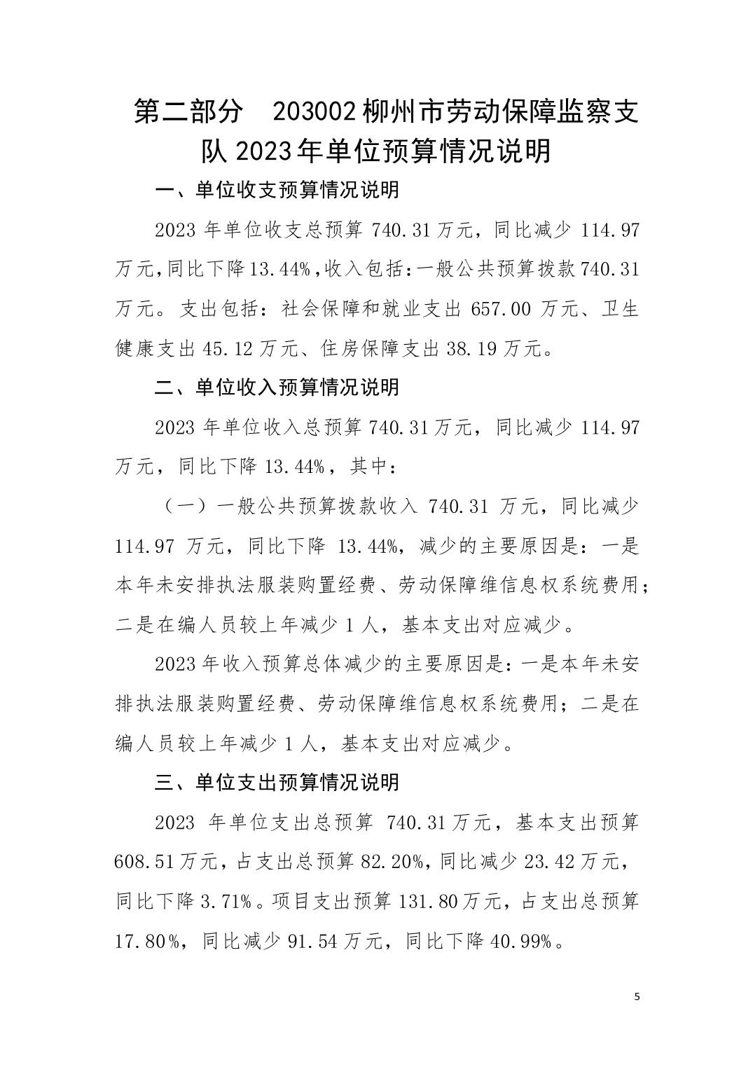203002柳州市劳动保障监察支队2023年单位预算公开说明 - 2023 - 广西博彩导航网网站