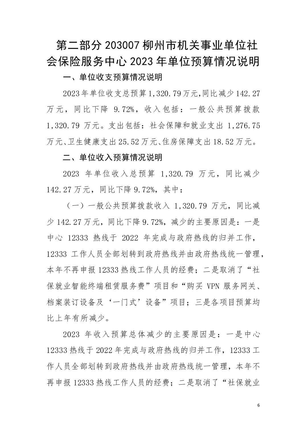 203007柳州市机关事业单位社会保险服务中心2023年单位预算公开说明 - 2023 - 广西博彩导航网网站