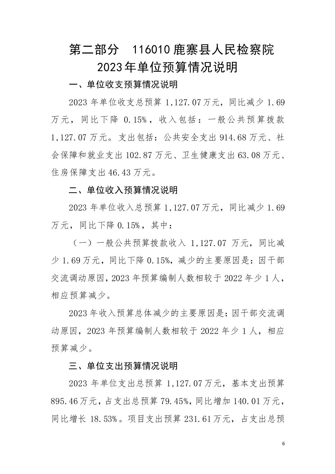 116010鹿寨县人民检察院2023年单位预算公开说明