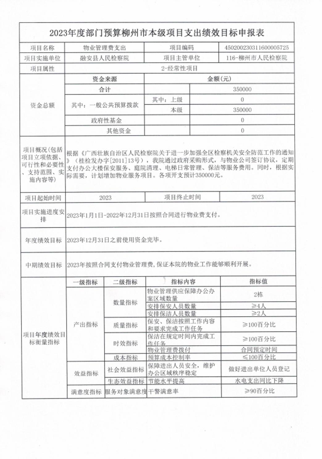 融安县人民检察院2023年物业管理费项目支出绩效目标申报表.xls