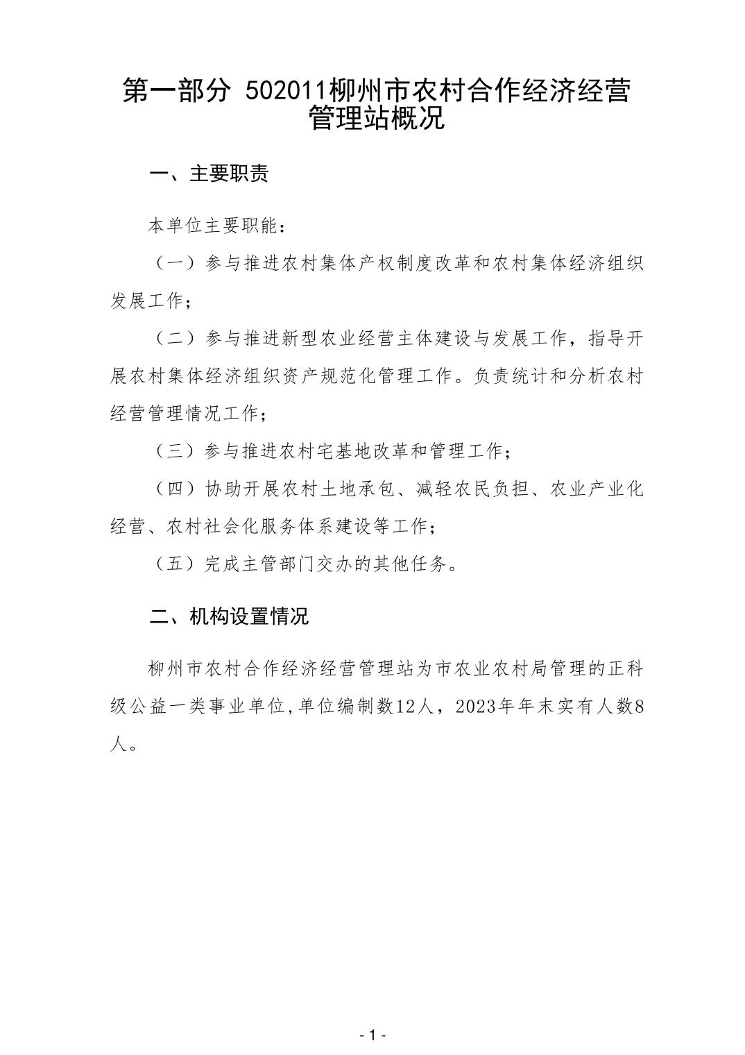 502011柳州市农村合作经济经营管理站2024年单位预算公开说明 - 2024 - 广西博彩公司网址网站