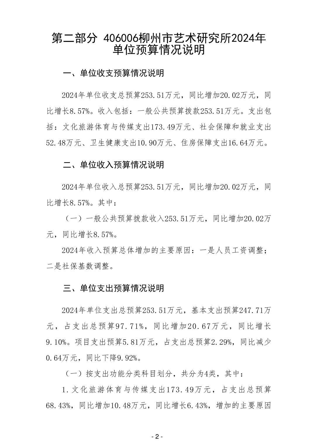 406006柳州市艺术研究所2024年单位预算公开说明 - 2024 - 广西博彩导航网网站