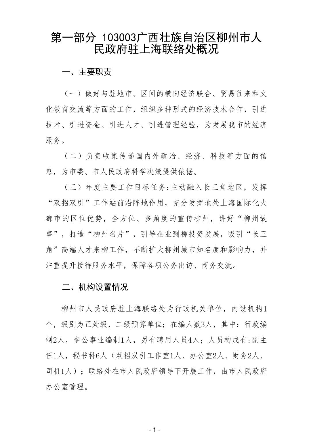 103003柳州市人民政府驻上海联络处2024年单位预算公开 - 2024 - 广西博彩导航网网站