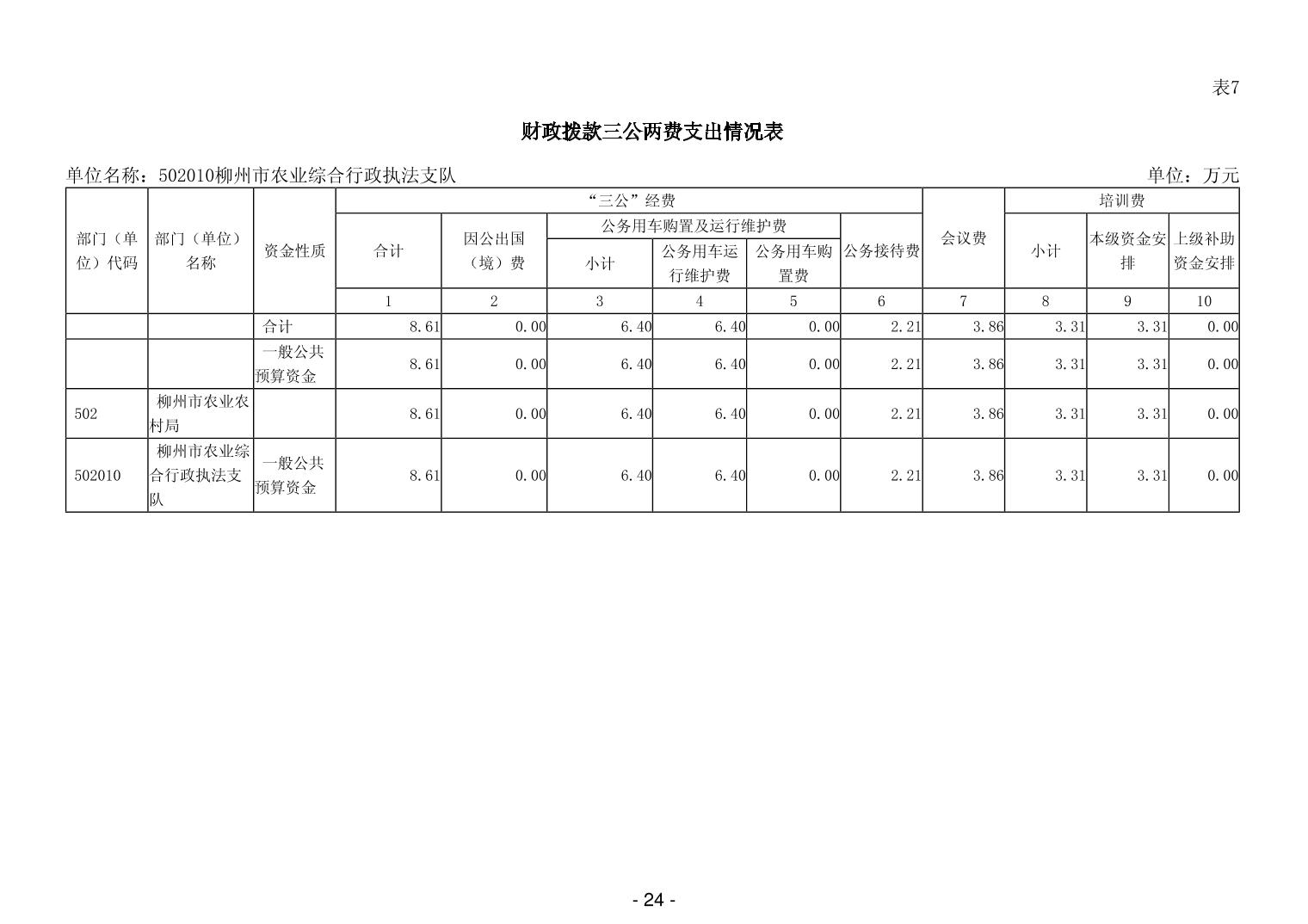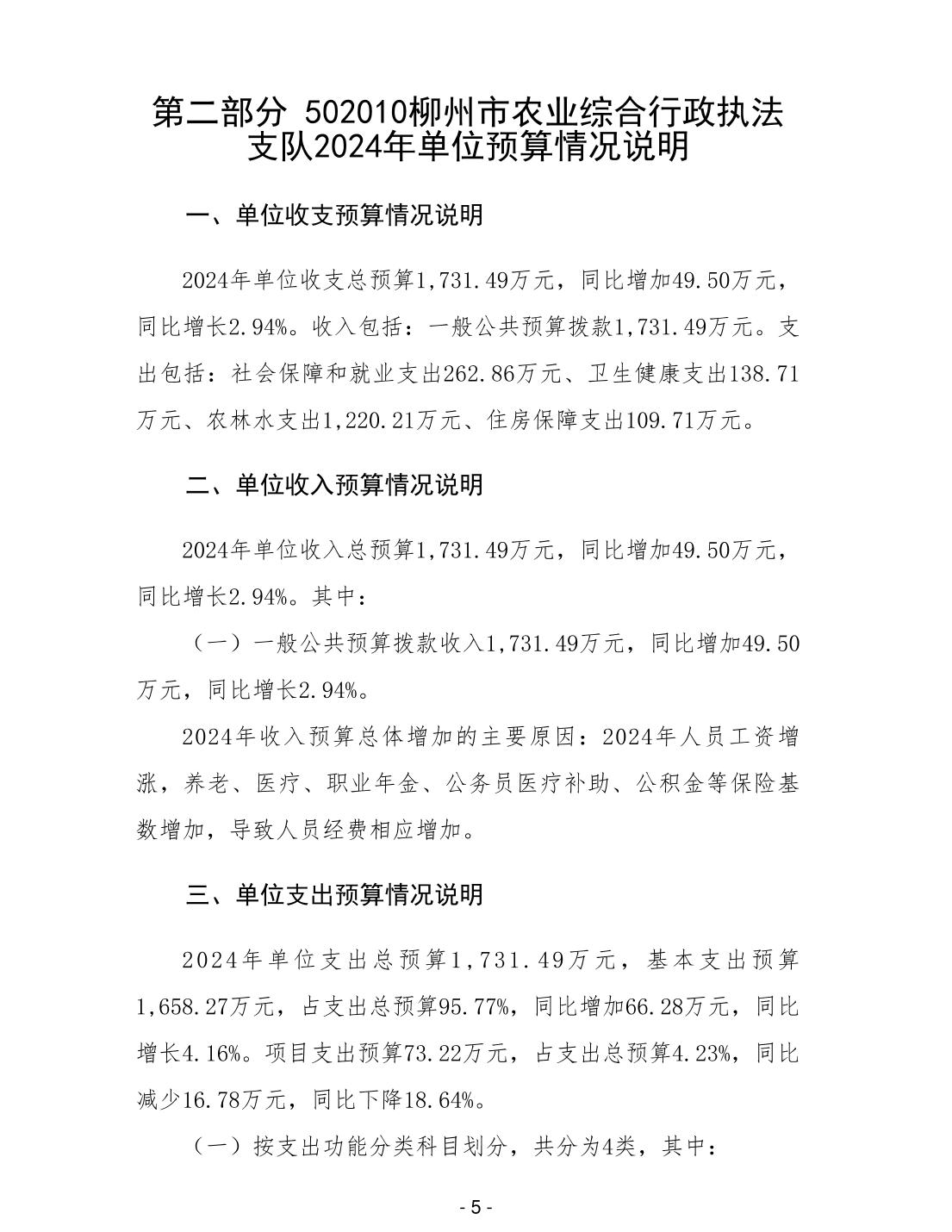 502010柳州市农业综合行政执法支队2024年单位预算公开说明 - 2024 - 广西博彩公司网址网站