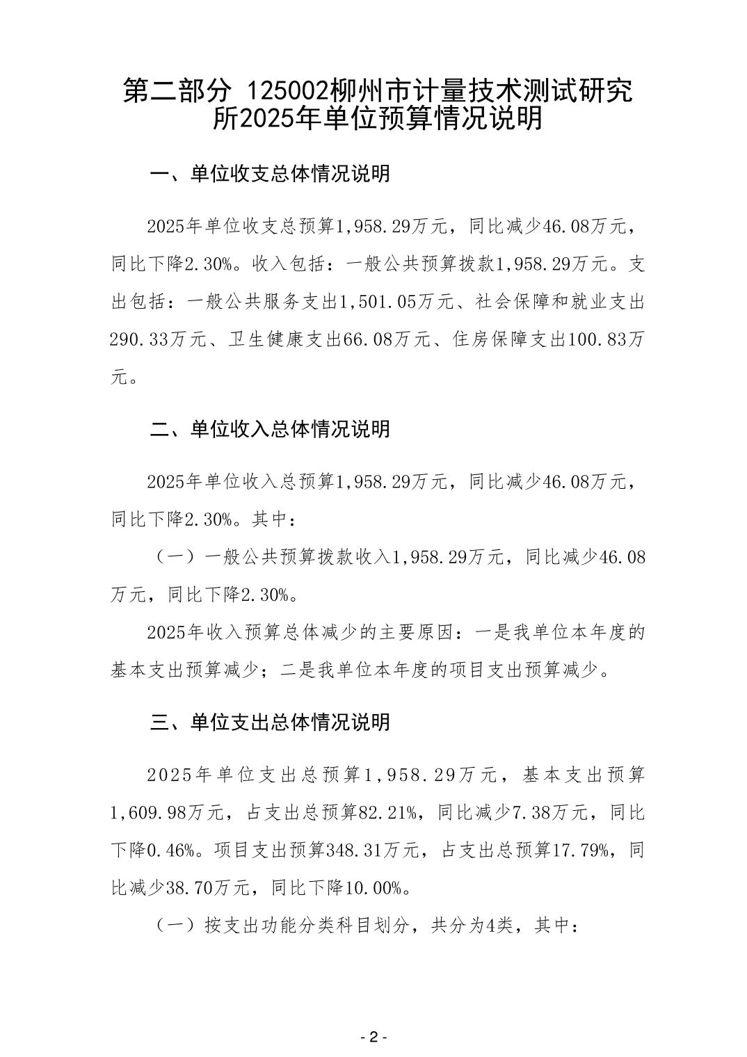 125002柳州市计量技术测试研究所2025年单位预算公开说明 - 2025 - 广西博彩导航网网站