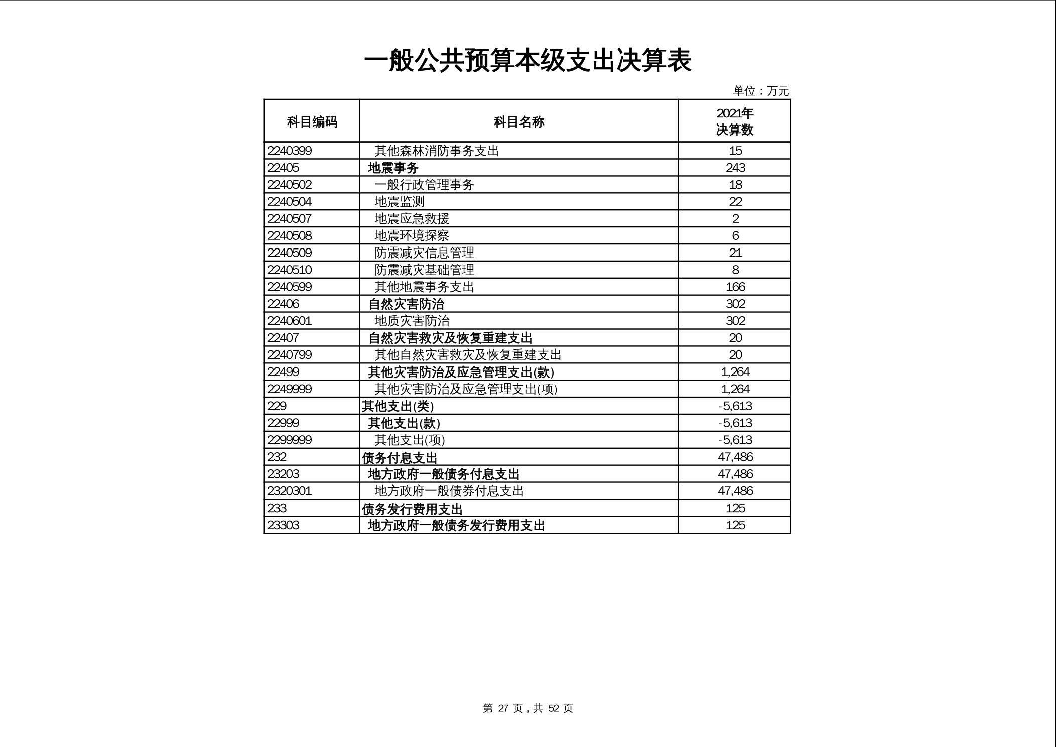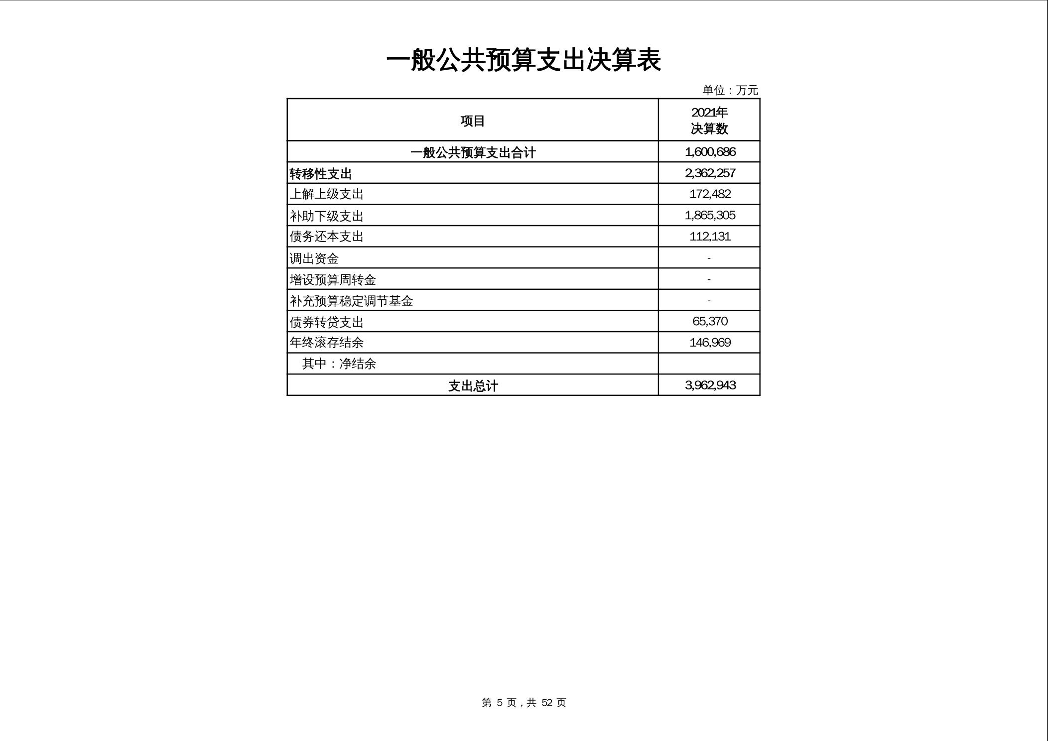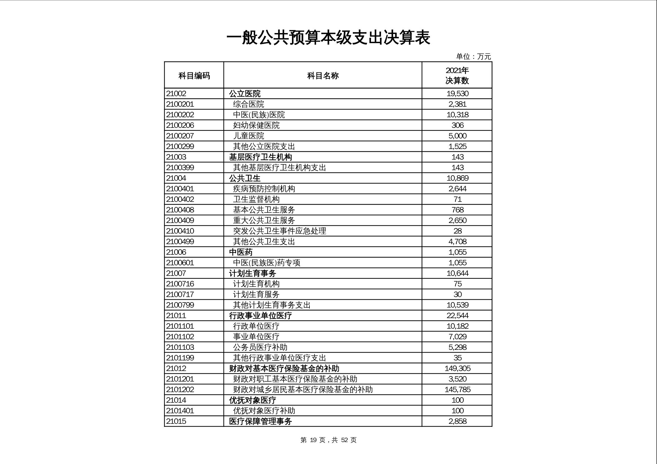 2021年市本级政府决算公开报表