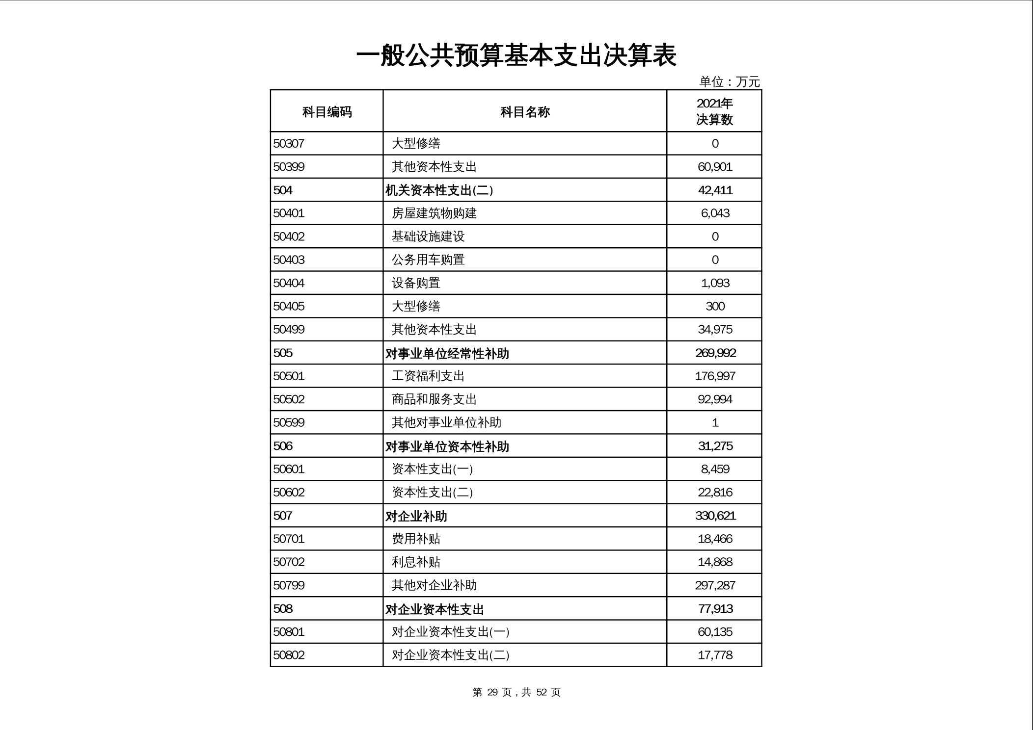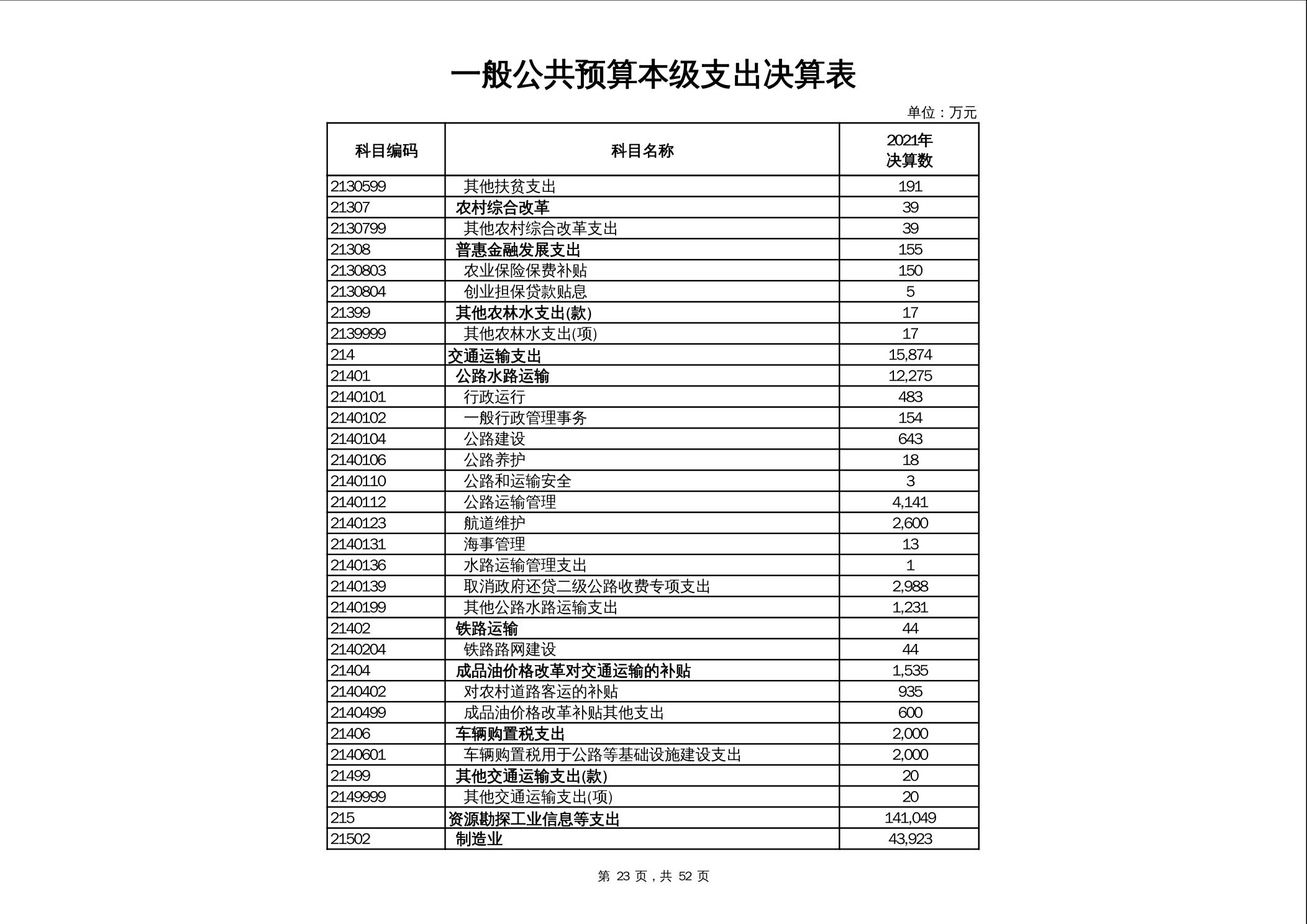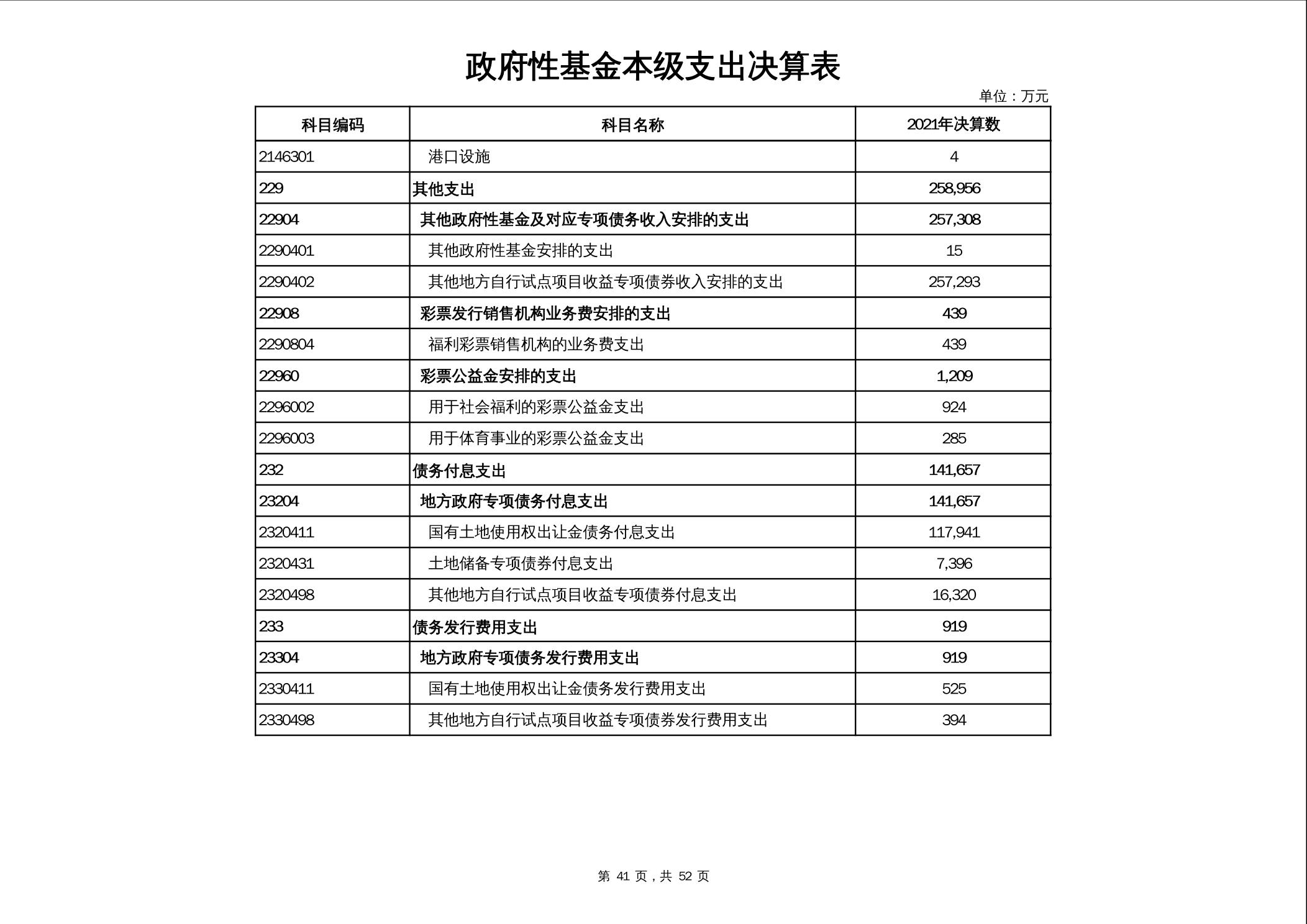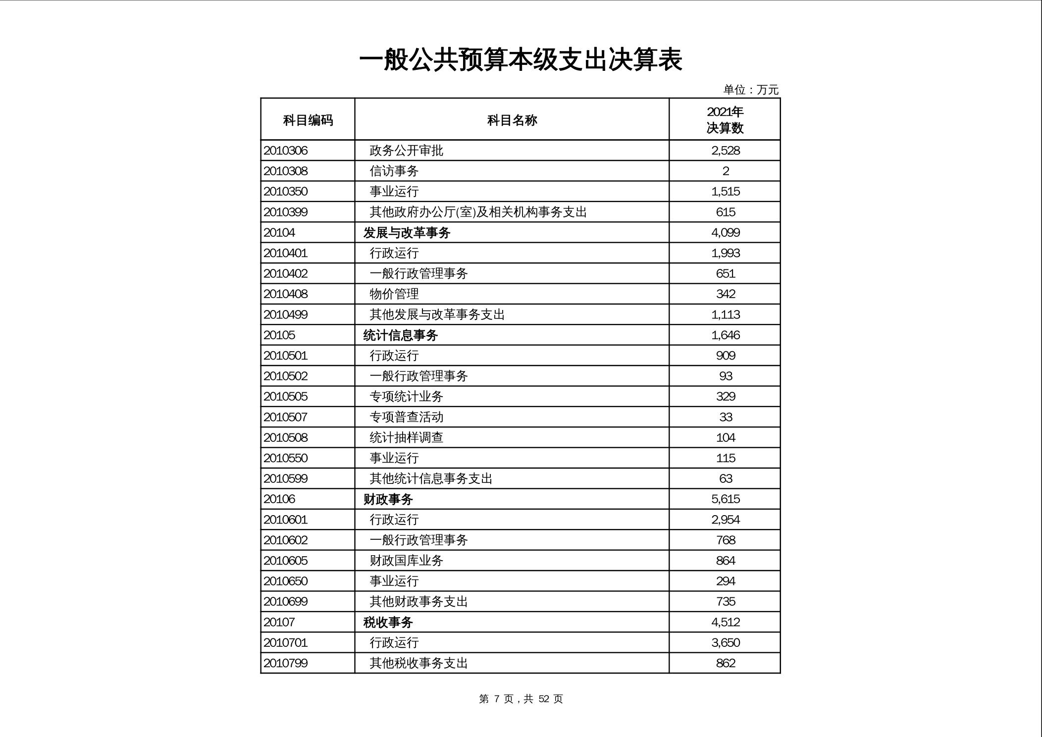2021年市本级政府决算公开报表