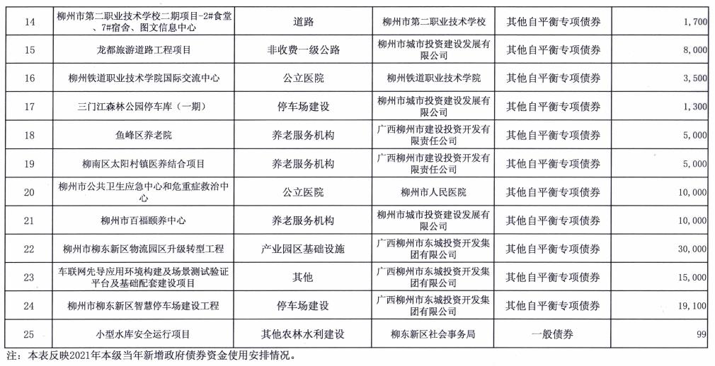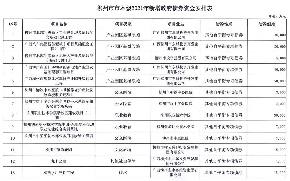 柳州市市本级2021年新增政府债券资金安排表 - 2021 - 广西博彩公司网址网站