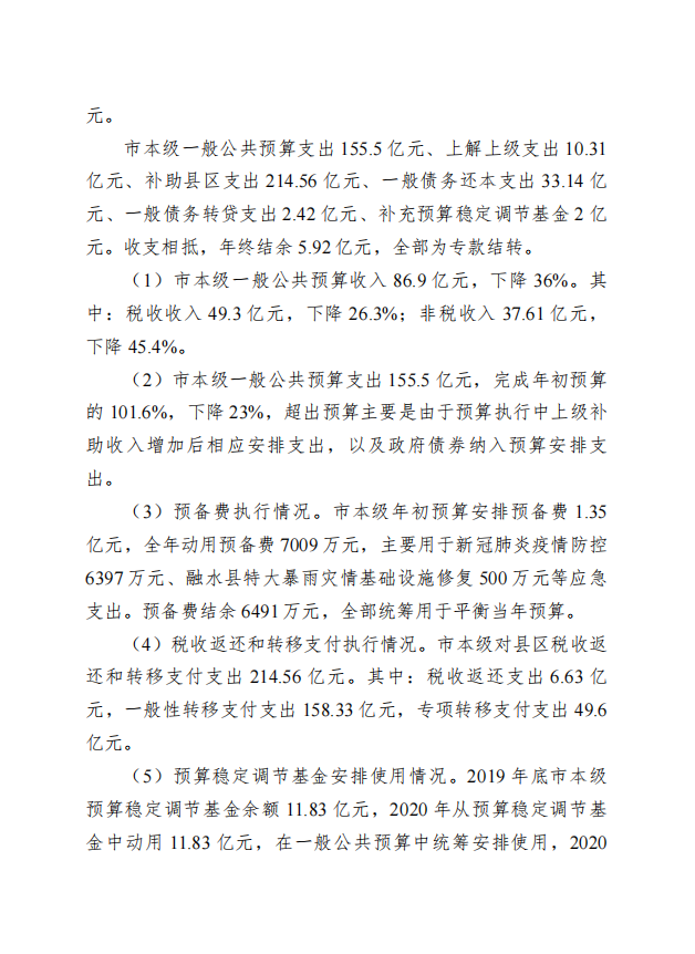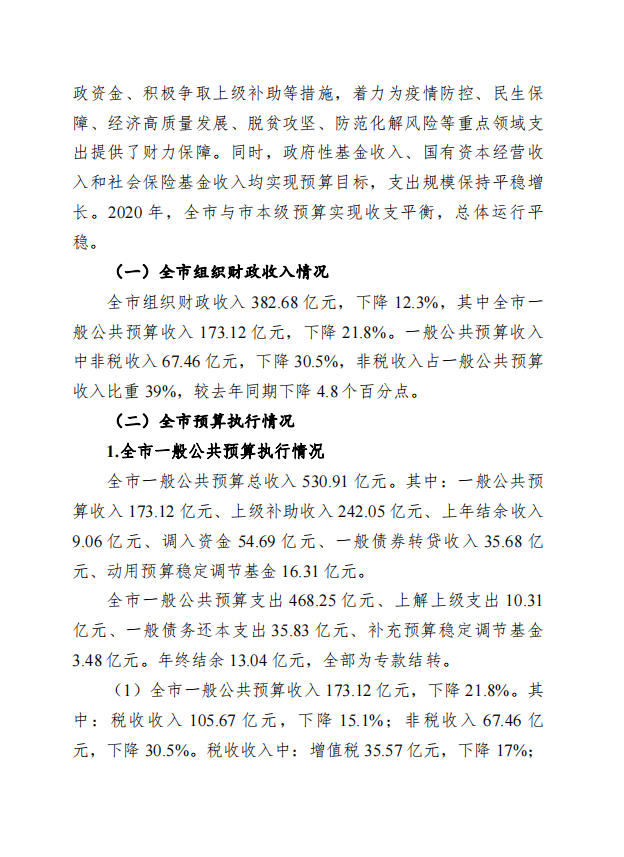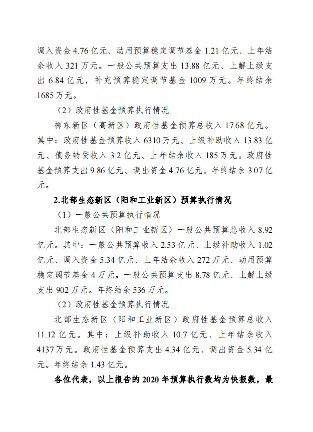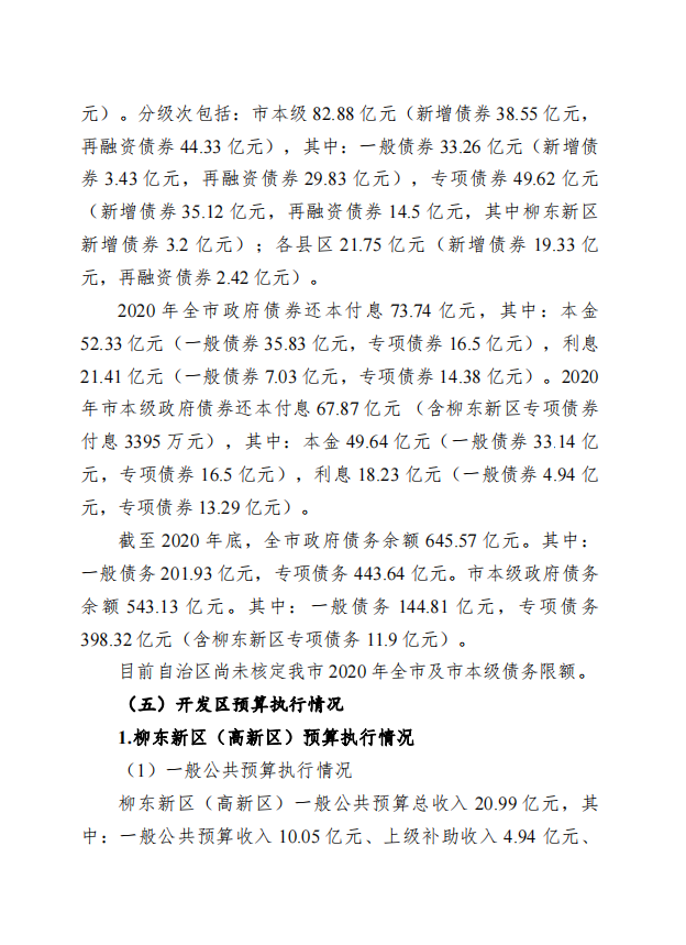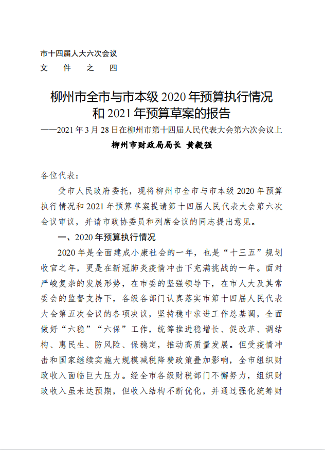 柳州市全市与本级2020年预算执行情况和2021年预算草案的报告
