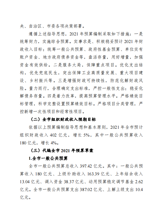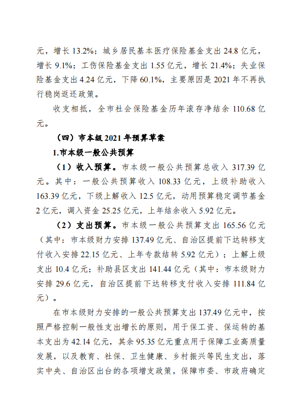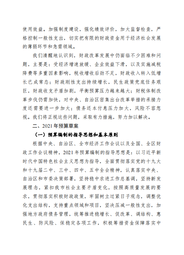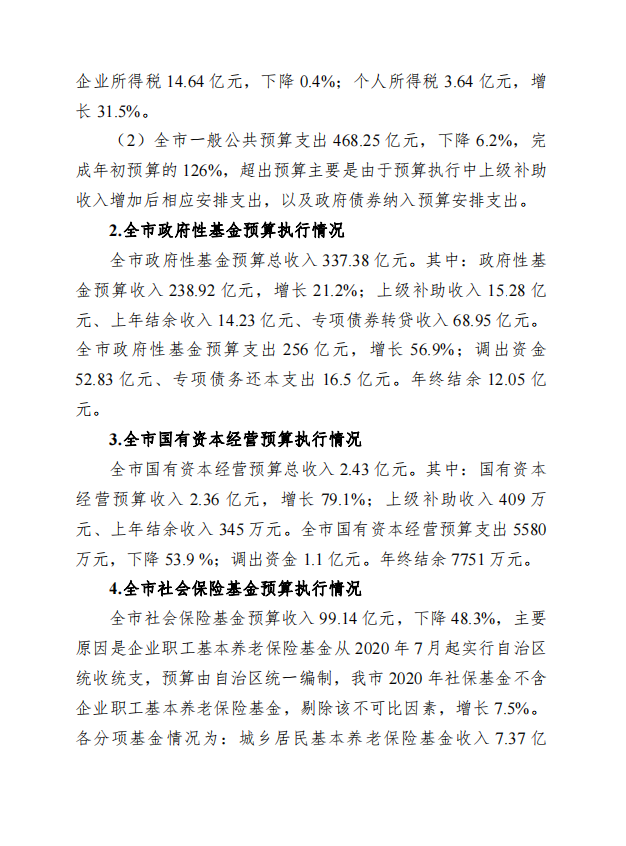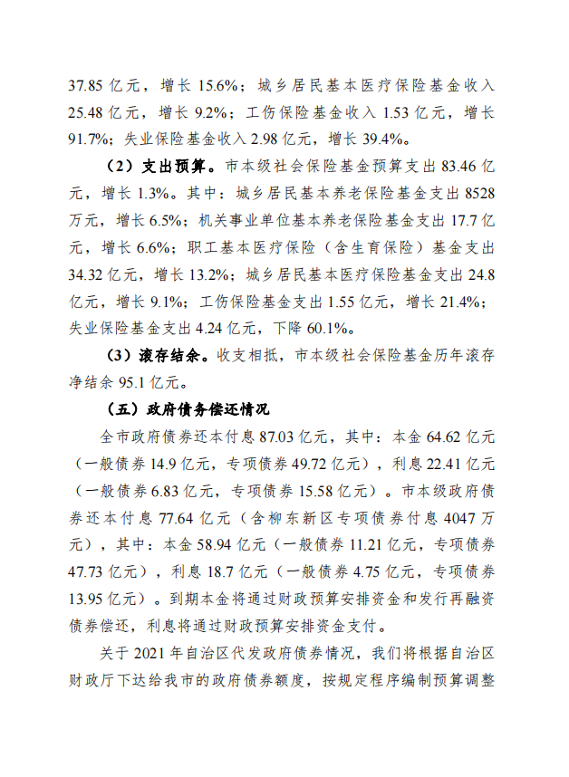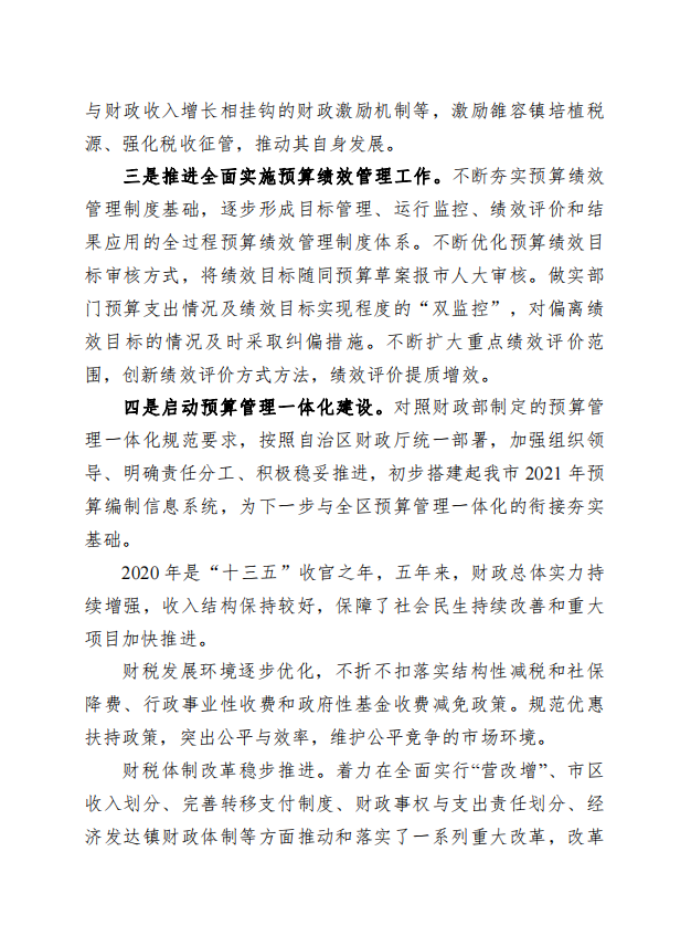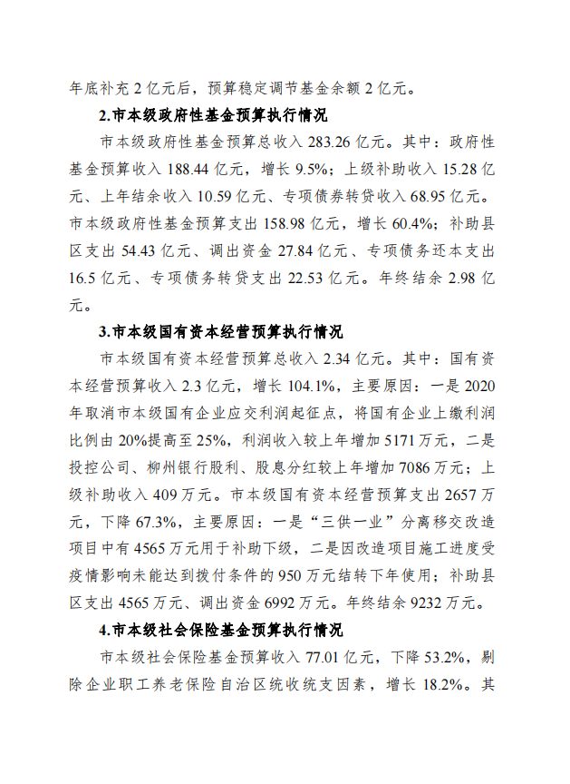 柳州市全市与本级2020年预算执行情况和2021年预算草案的报告 - 2021 - 广西博彩导航网网站