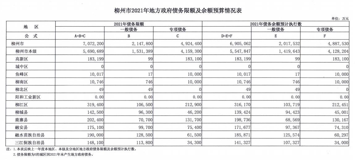 1.柳州市2021年地方政府债务限额及余额预算情况表.pdf