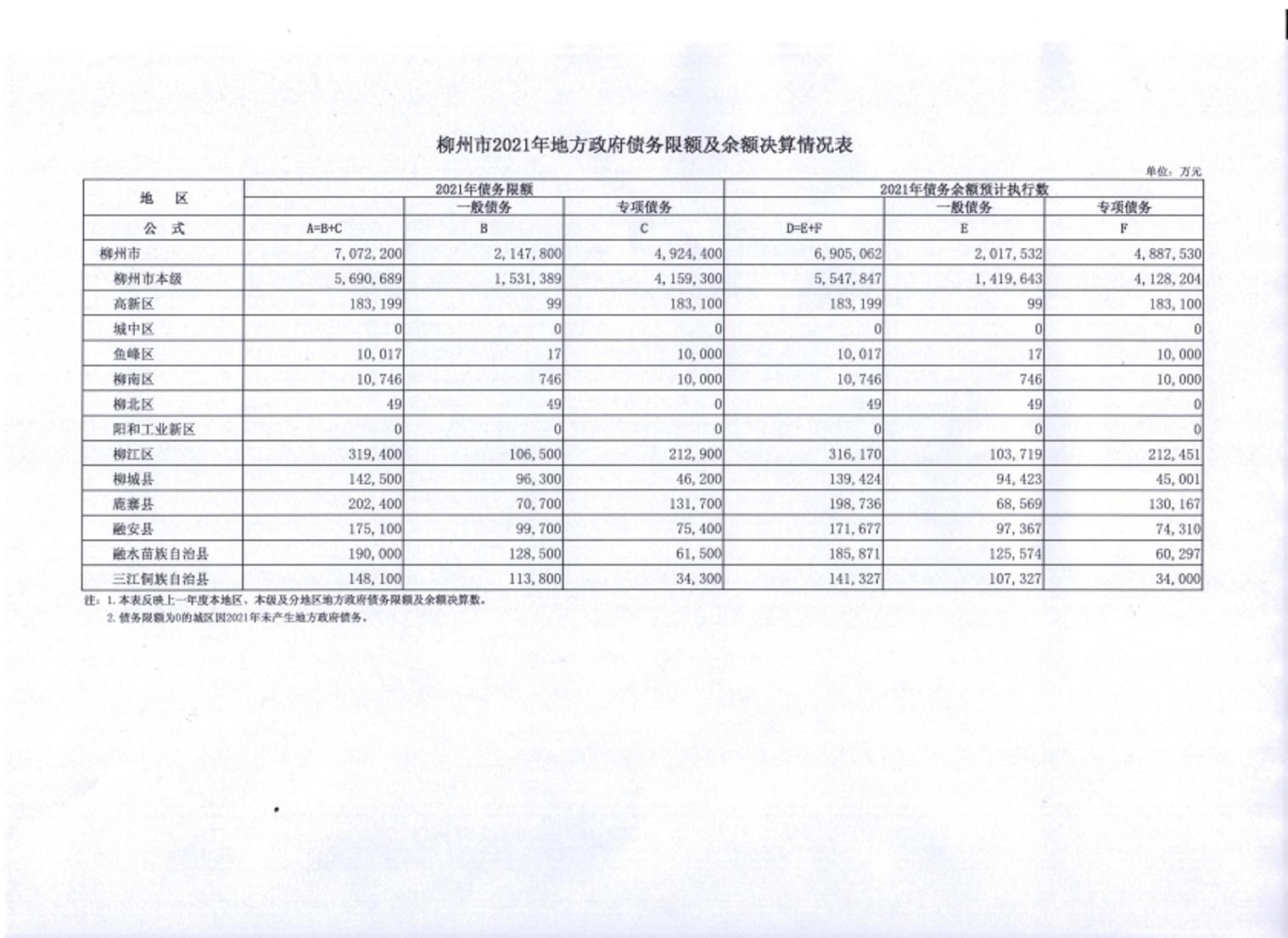 柳州市2021年地方政府债务限额及余额决算情况表 - 2021 - 广西博彩导航网网站