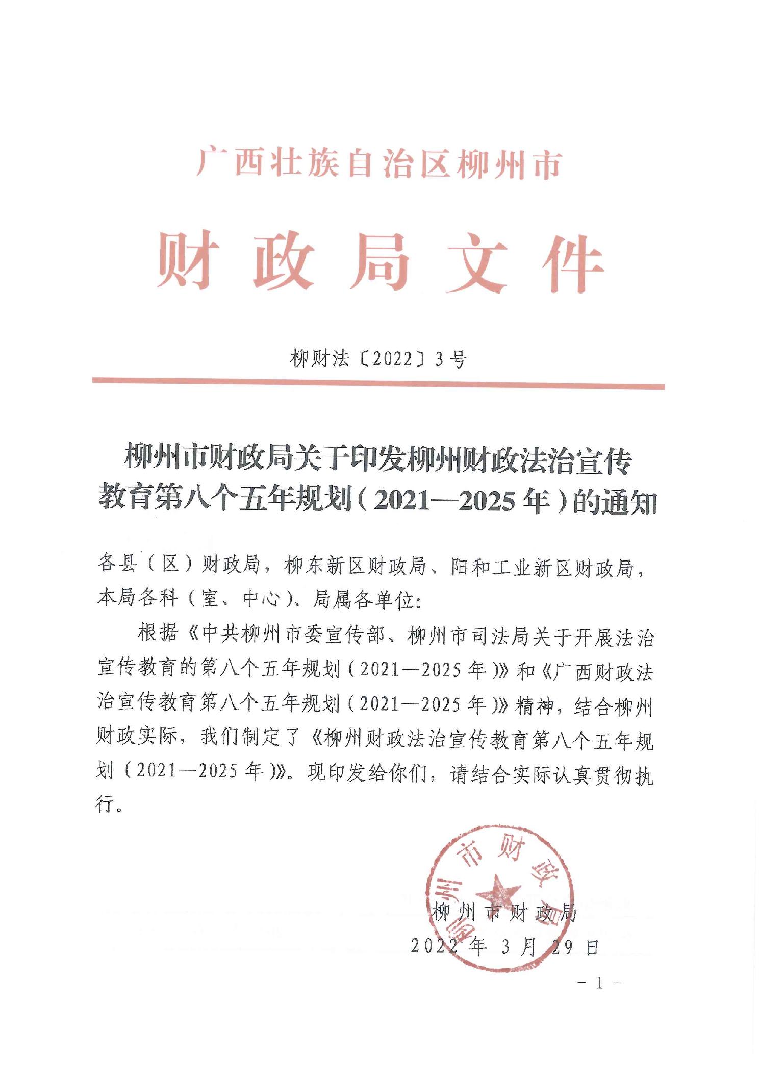 博彩公司网址关于印发《柳州财政法治宣传教育第八个五年规划(2021—2025年)》的通知 - 中长期计划 - 广西博彩公司网址网站