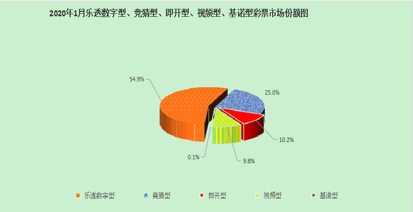 1月份,乐透数字型彩票销售149.69亿元,同比减少99.18亿元,下降39.9%;竞猜型彩票销售68.04亿元,同比减少96.10亿元,下降58.5%;即开型彩票销售27.77亿元,同比增加5.93亿元,增长27.1%;视频型彩票销售26.50亿元,同比减少18.09亿元,下降40.6%;基诺型彩票销售0.10亿元,同比减少0.01亿元,下降7.8%。1月份,乐透数字型、竞猜型、即开型、视频型、基诺型彩票销售量分别占彩票销售总量的54.9%、25.0%、10.2%、9.8%、0.1%。