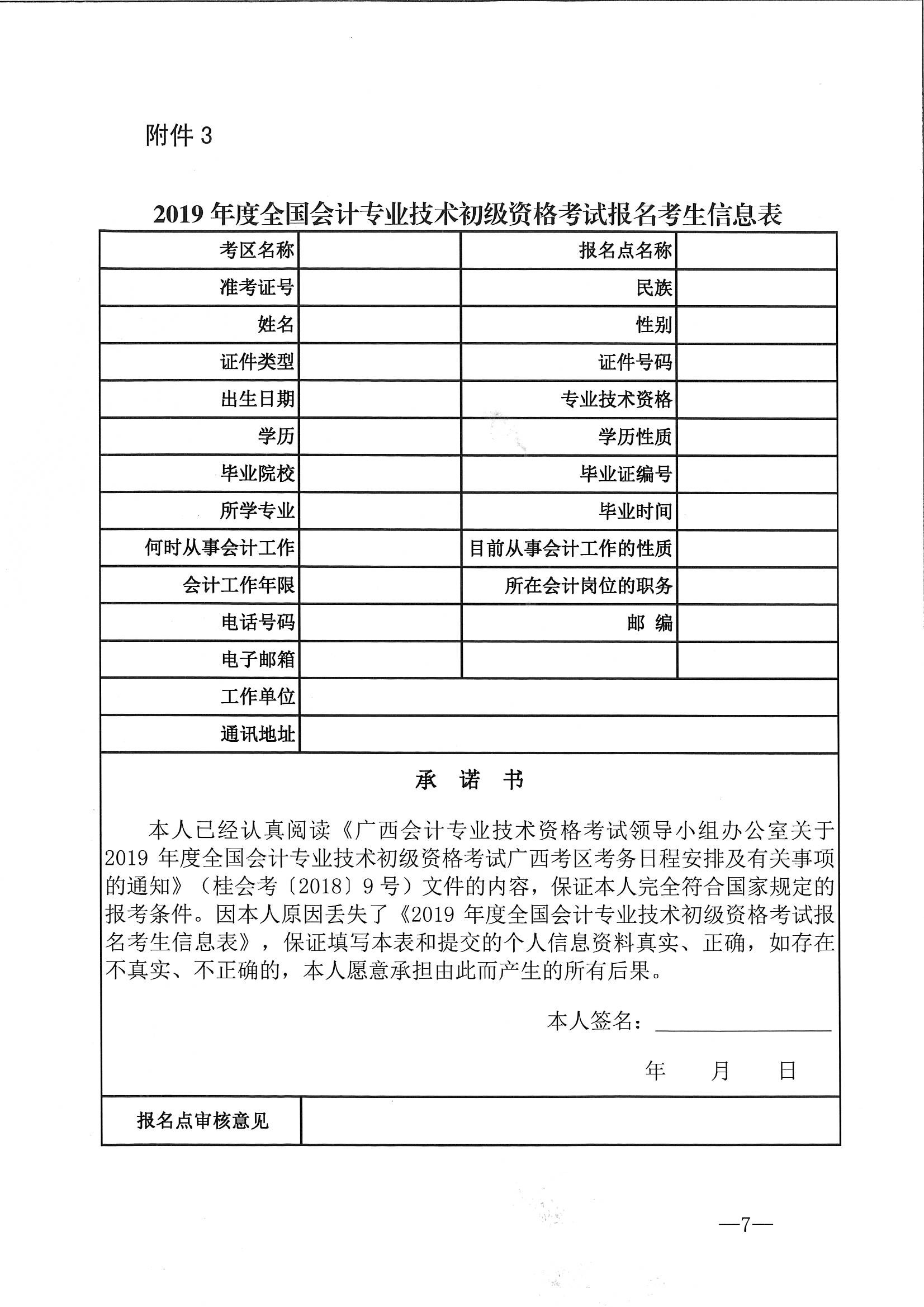 2019年度全国会计专业技术初级资格考试报名考生信息表