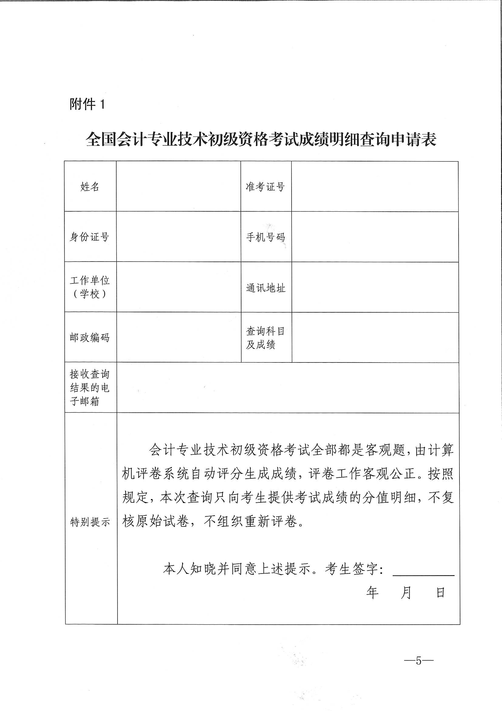 全国会记专业技术初级资格考试成绩明细查询申请表
