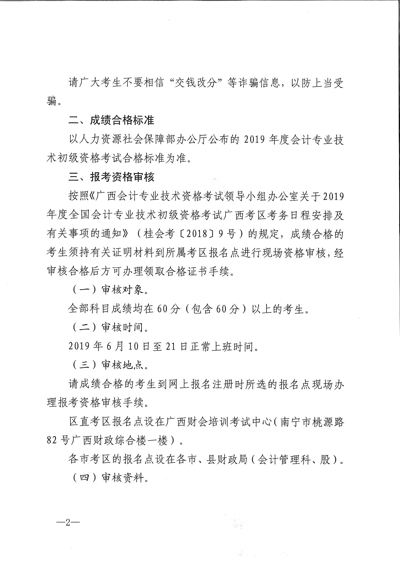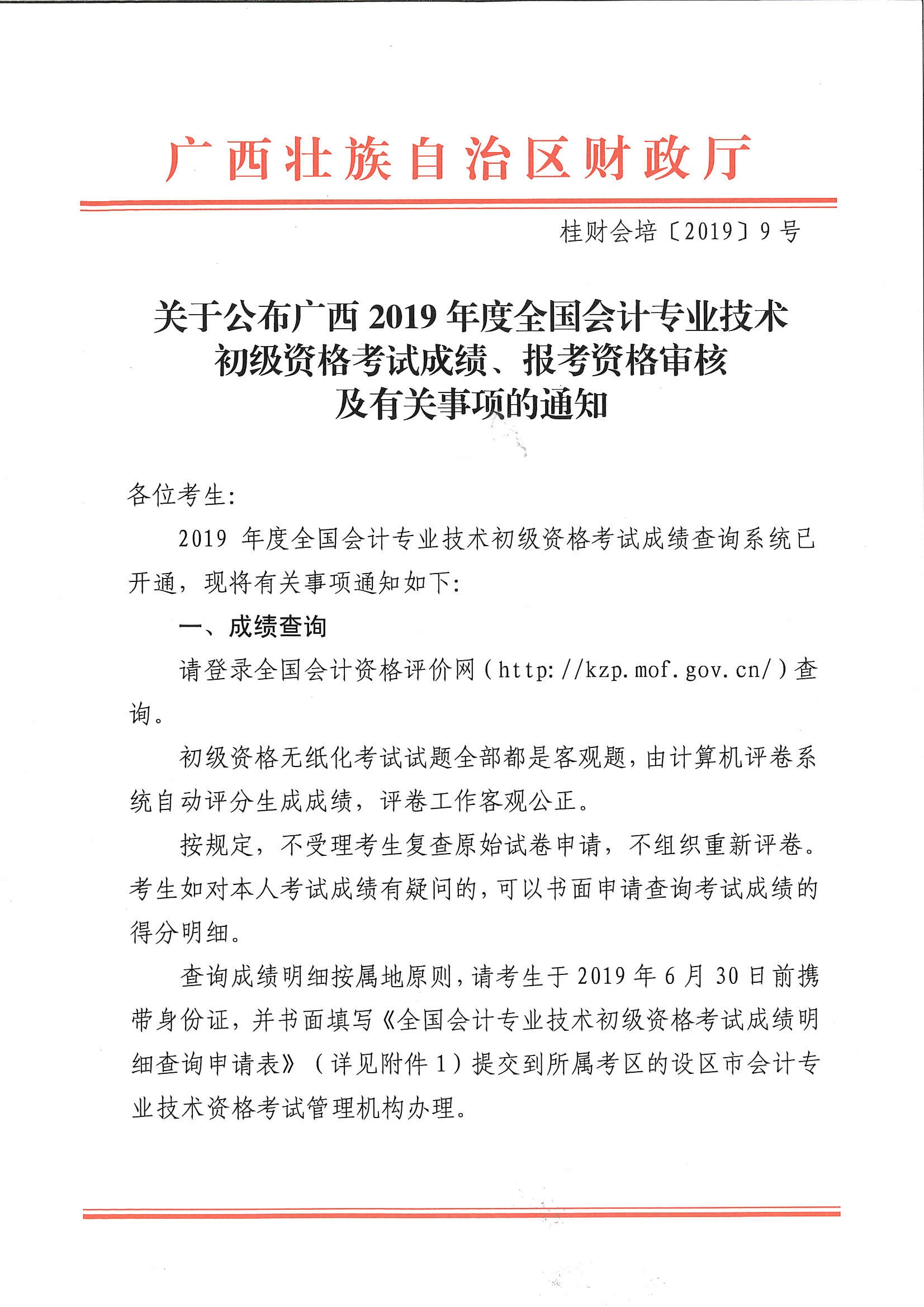 关于公布广西2019年度全国会计专业技术初级资格考试成绩、报考资格审核及有关事项的通知