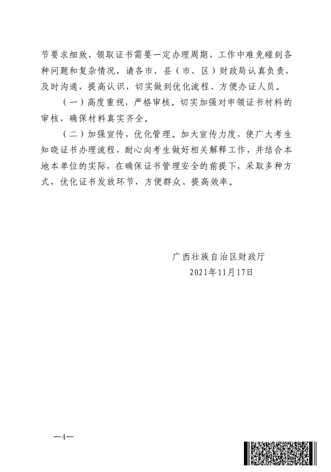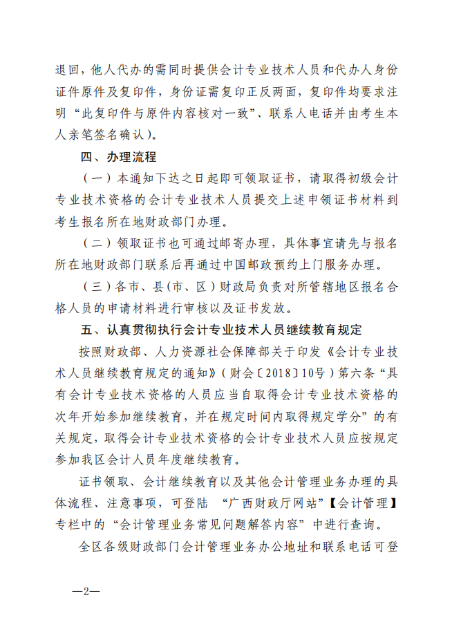 广西壮族自治区财政厅关于领取2021年度初级会计专业技术资格证书有关事项的通知