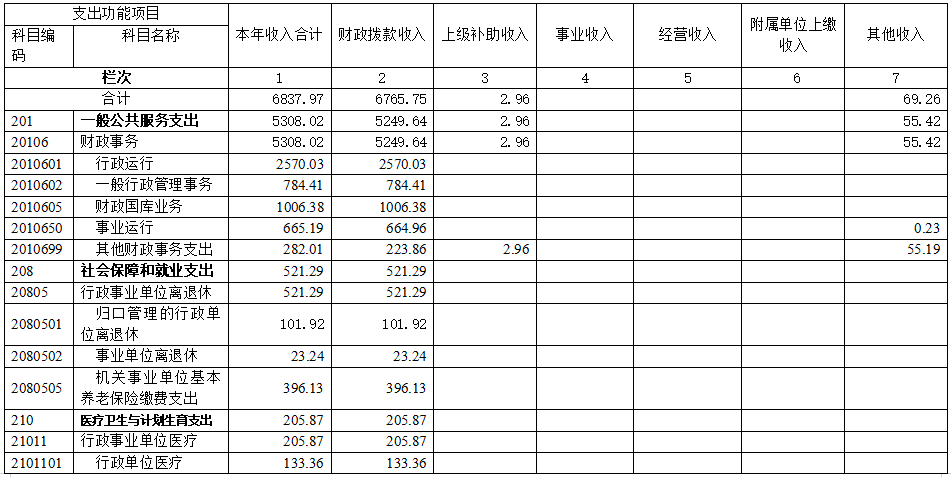 财政拨款收入6765.75万元,占比98.95%;上级补助收入2.96万元,占比0.04%;其他收入69.26万元,占比1.01%。
