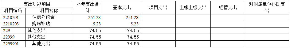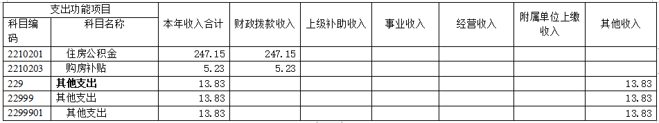 20.住房保障支出(类)住房改革支出(款)住房公积金(项),支出功能分类科目编码2210201。年初预算为247.97万元,支出决算为251.28万元,完成年初预算的101.33%。决算数大于预算数的主要原因是:部分支出年初未安排财政拨款预算,而是按规定通过使用以前年度财政拨款结转资金解决。