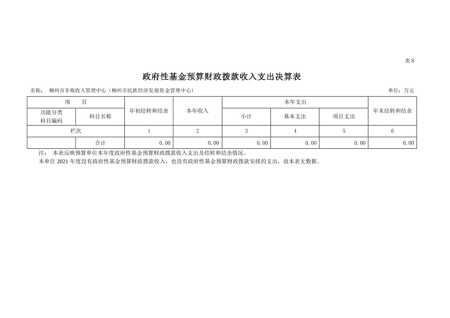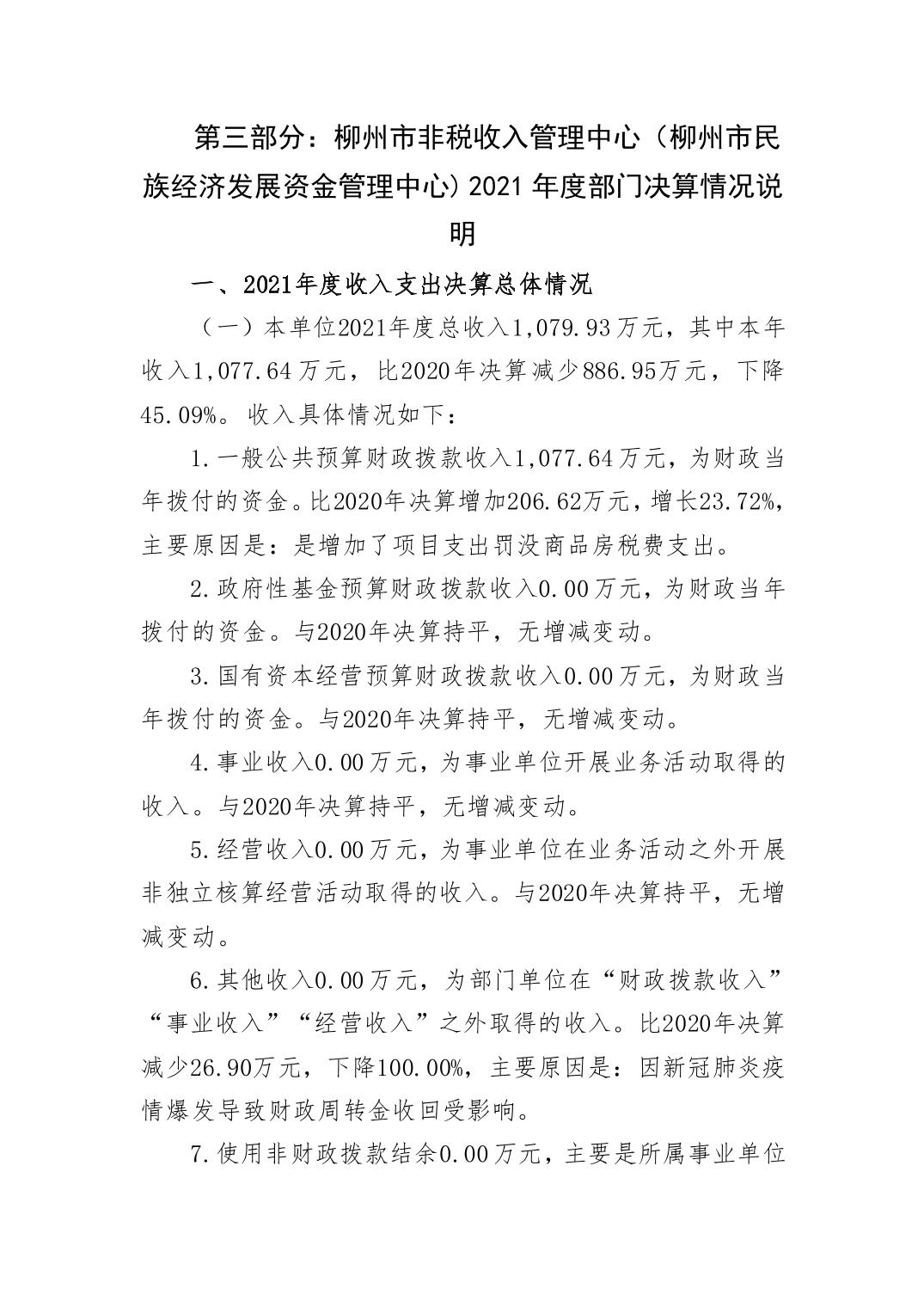 2021年柳州市非税收入管理中心(柳州市民族经济发展资金管理中心)部门决算 - 2021 - 广西博彩导航网网站