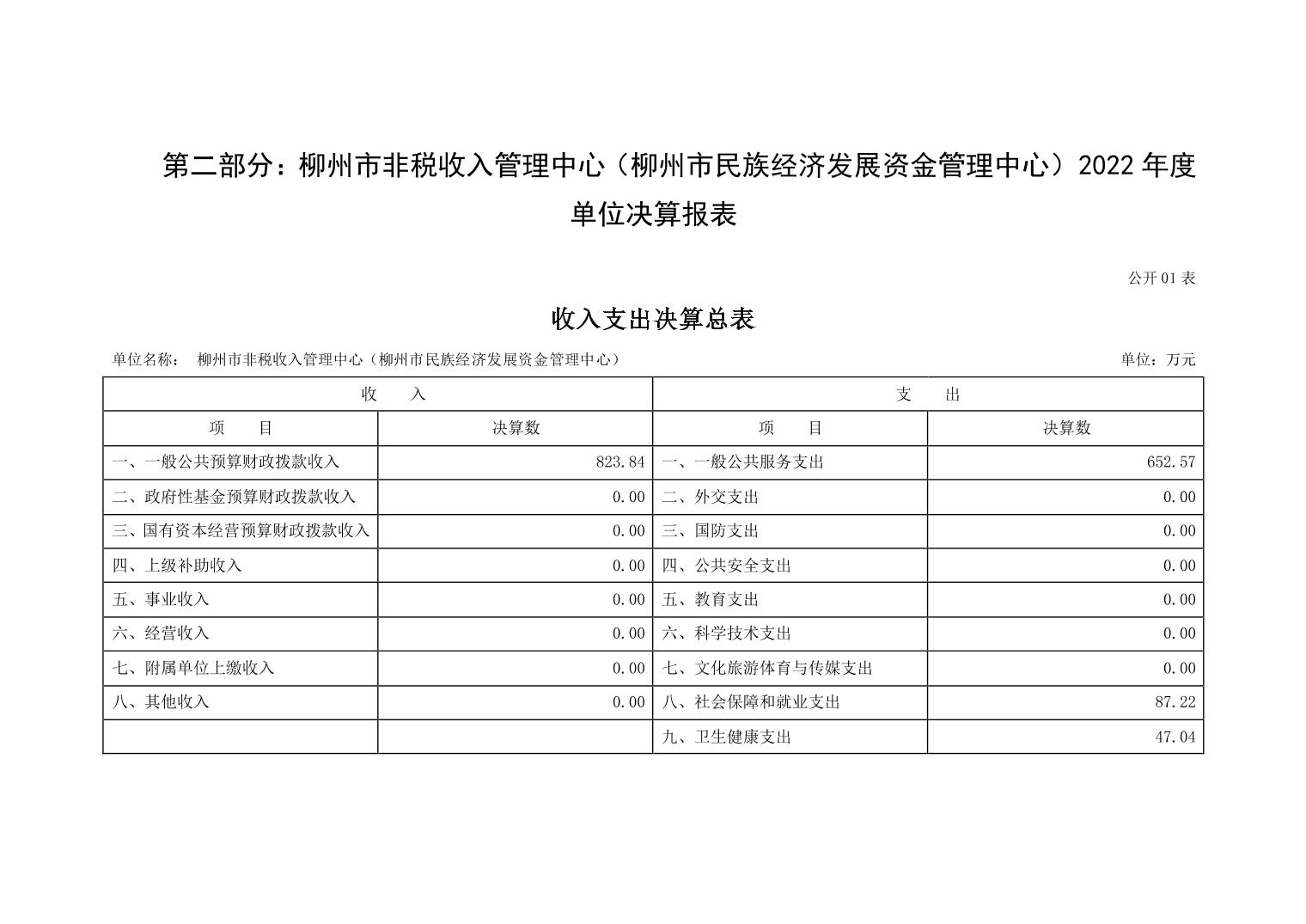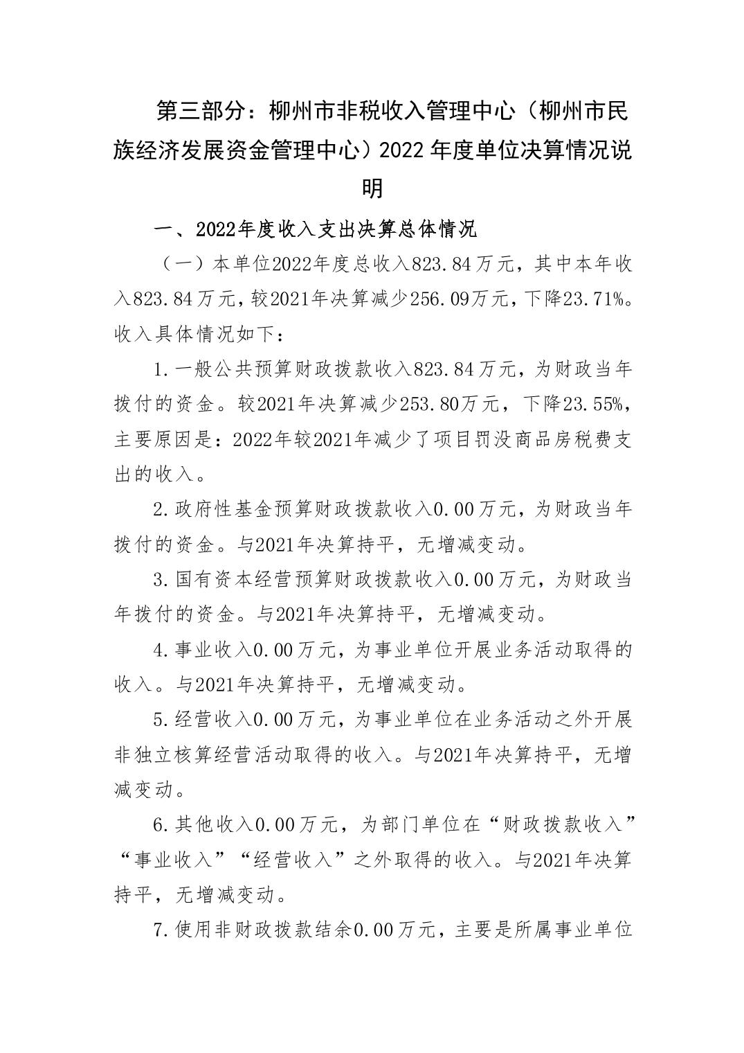 柳州市非税收入管理中心(柳州市民族经济发展资金管理中心)2022年度单位决算.pdf