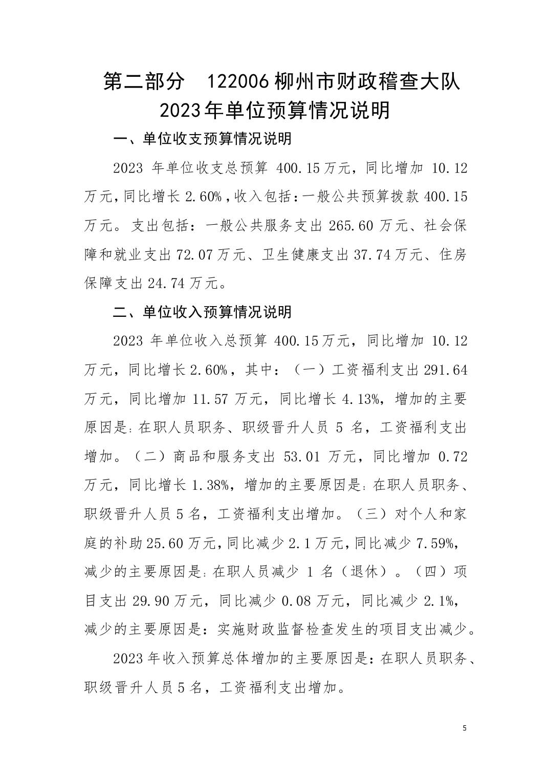 122006柳州市财政稽查大队2023年单位预算公开说明 - 2023 - 广西博彩导航网网站