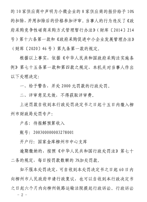 《行政处罚决定书》(柳财处〔2022〕7号)