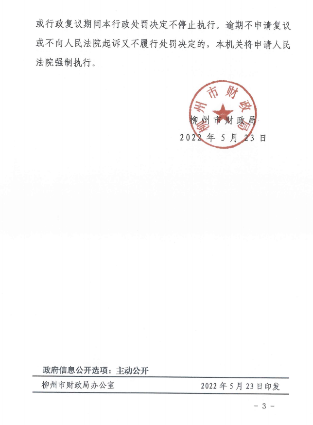 《行政处罚决定书》(柳财处〔2022〕7号) - 信用公示 - 广西博彩公司网址网站