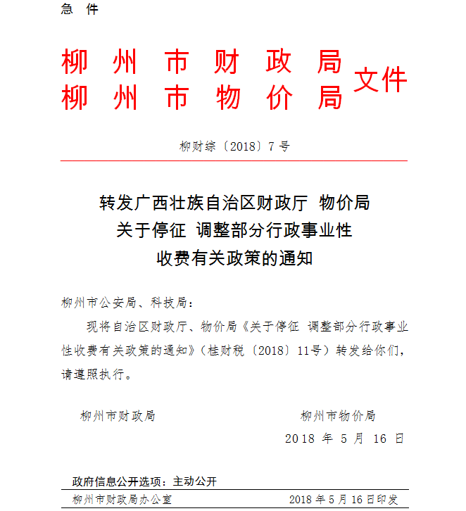 转发广西壮族自治区财政厅物价局关于停征调整部分行政事业性收费有关政策的通知 - 行政事业收费 - 广西博彩导航网网站