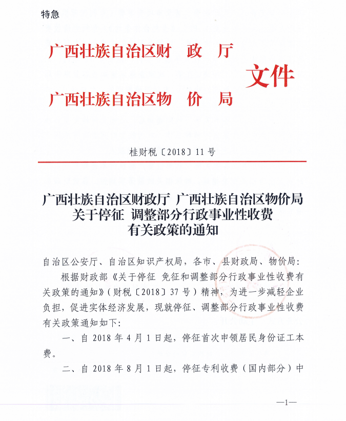 关于停征调整部分行政事业性收费有关政策的通知(桂财税〔2018〕11号).pdf