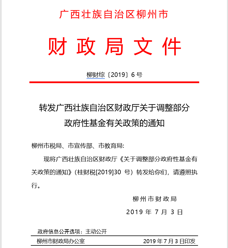 转发广西壮族自治区财政厅关于调整部分政府性基金有关政策的通知 - 政府性基金 - 广西博彩公司网址网站