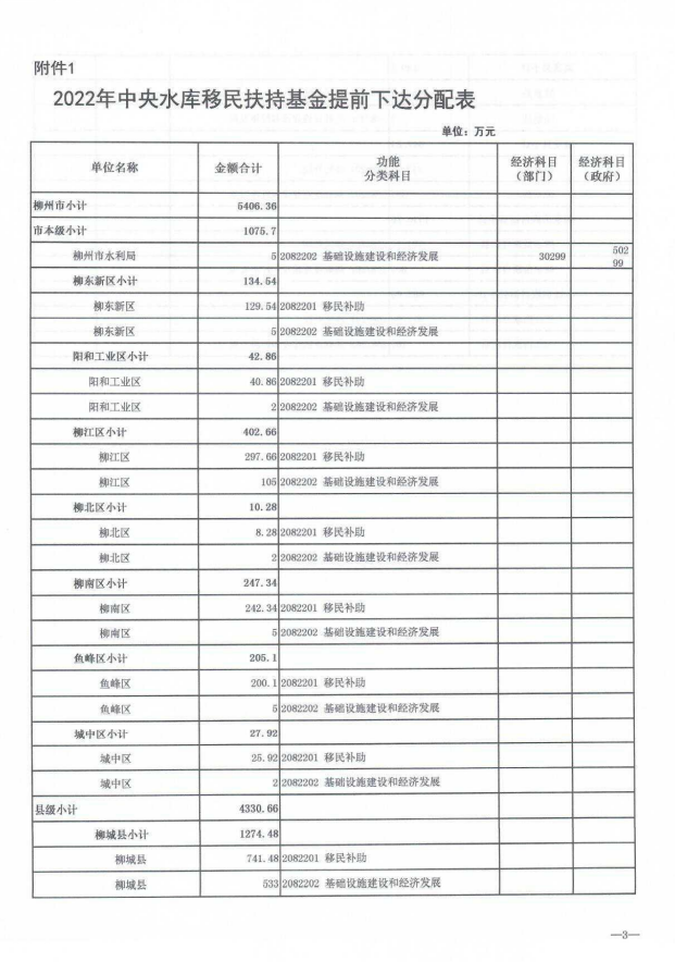 柳财预追〔2021〕522号 关于提前下达2022年中央水库移民扶持基金预算的通知